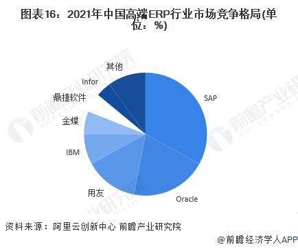 在高端ERP軟件市場,仍然是國外的廠商占據(jù)主要市場,主要是由于國內(nèi)ERP廠商起步較晚,我國高端ERP軟件的技術(shù)水平,產(chǎn)品能力和產(chǎn)業(yè)規(guī)模均與我國制造業(yè)大國的地位不匹配。2021年,我國高端ERP軟件市占率最高的是SAP,達到了33%,其次是Oracle,市占率達到20%。