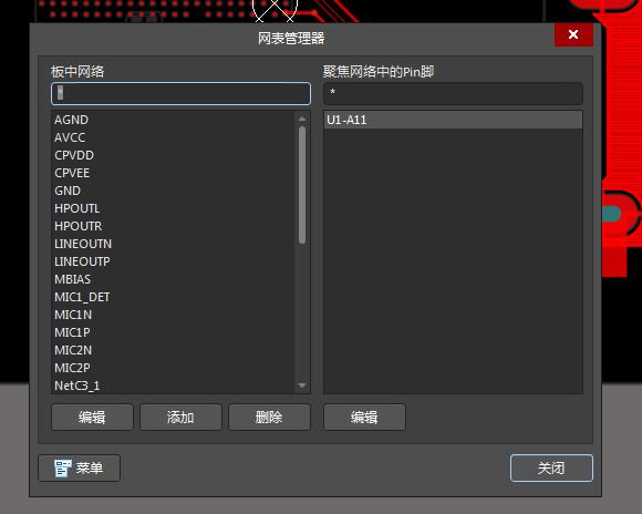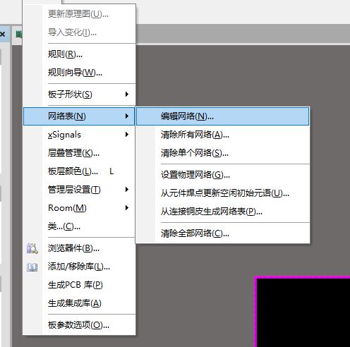 1、首先我們需要按照先在PCB中創(chuàng)建一個新的網(wǎng)絡(luò),這樣的目的是添加上縫合孔。PCB界面點擊“設(shè)計”菜單欄,打開“網(wǎng)絡(luò)表-編輯網(wǎng)絡(luò)”如下24圖所示。