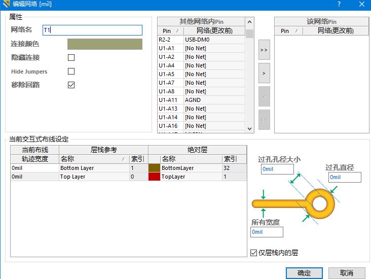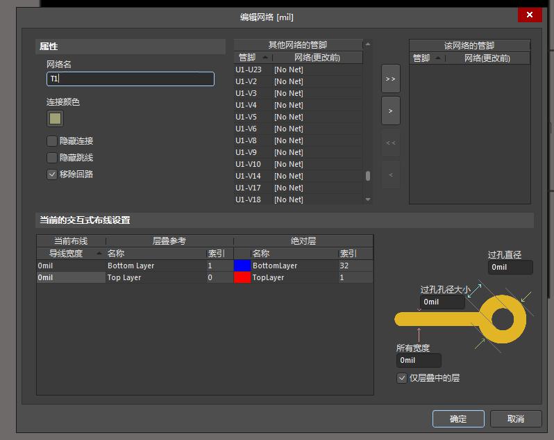 在彈出的“網(wǎng)表管理器”中點擊“添加”,即可彈出“編輯網(wǎng)絡(luò)”對話框,如下圖25所示。例如以添加一個“T1”網(wǎng)絡(luò)為例進行添加,如下26圖所示。