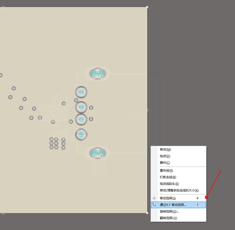 4、底層多邊形銅皮創(chuàng)建完成之后,點擊選中此銅皮,使用移動命令按“M”,選擇”通過X/Y移動選中對象”,設(shè)置一定的移動步進,將銅皮移出pcb設(shè)計界面,如下圖9所示: