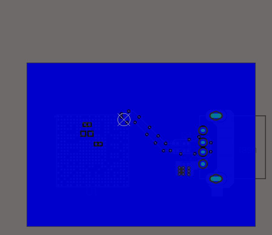銅皮屬性設(shè)置完成之后點擊“確定”,此時可以看到PCB中已在底層鋪上銅皮,如下圖30所示: