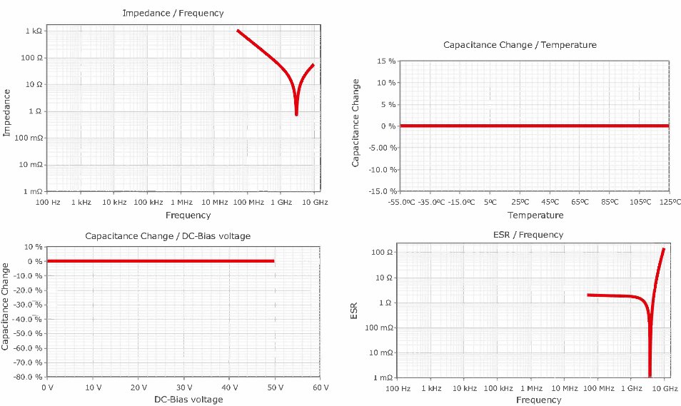 只有某些類(lèi)型的電容適用于高頻應(yīng)用,例如 WCAP-CSRF 系列(料號(hào) 885392005010)。其規(guī)格書(shū)中的電氣參數(shù)在如圖 1 所示,包括諧振頻率、ESR、直流偏置漂移和溫度漂移。這些參數(shù)也可以在在線(xiàn)仿真平臺(tái)“REDEXPERT”(redexpert.we-online.com)上進(jìn)行仿真。