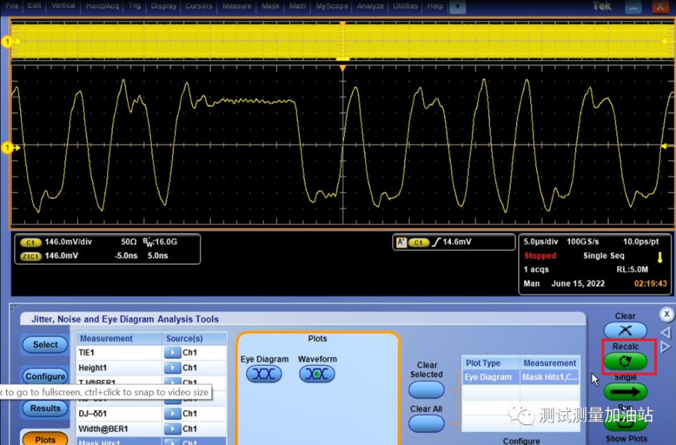 Step6: 點(diǎn)擊Recalc進(jìn)行眼圖模板分析,見下圖。