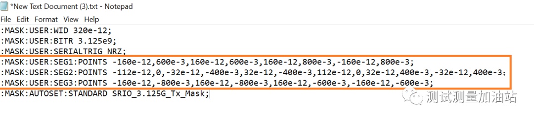 假如被測信號(hào)的速率是3.125Gbps,一個(gè)UI就是3.125Gbps的倒數(shù),即1UI=320ps,碼型是NRZ。BITR為信號(hào)速率3.125e9;WID為BITR倒數(shù)320e-12;打開一個(gè)空白txt文本文件,然后再空白輸入如下: