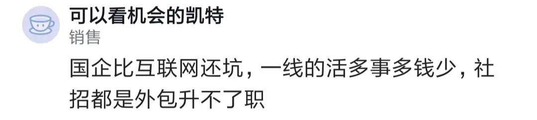有人說,多次勸大家去國企一定要留意,這幾年國企打著市場化的名義改革,強度堪比頭部互聯(lián)網(wǎng)公司,工資還低。