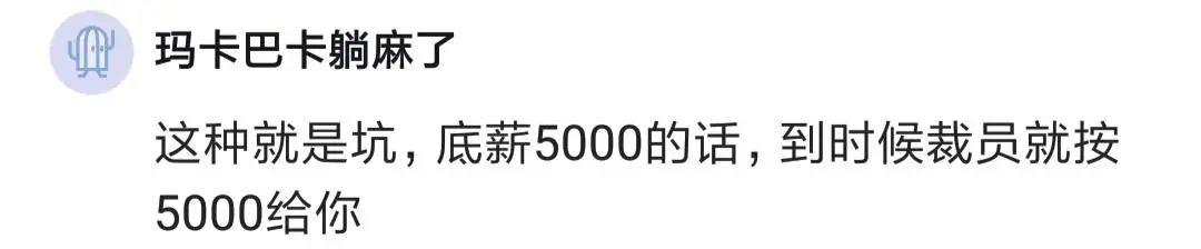 有人說(shuō),這種就是坑,底薪5000元,到時(shí)候裁員就按照5000元的標(biāo)準(zhǔn)給。