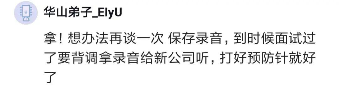 有人說(shuō),想辦法再談一次,保存錄音,到時(shí)候拿給新公司聽(tīng),打好預(yù)防針。