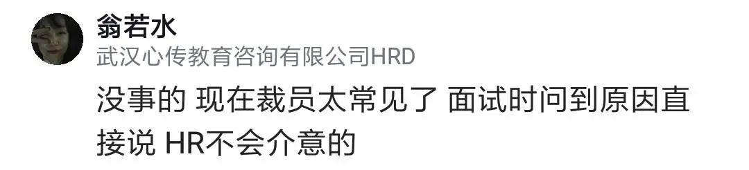 關(guān)于樓主擔(dān)心的背調(diào)說(shuō)是裁員走,網(wǎng)友說(shuō),裁員很正常,不會(huì)有負(fù)面影響,面試時(shí)直接說(shuō)就行,對(duì)方不會(huì)介意,因?yàn)楹霉径贾溃徊脝T不一定是員工的錯(cuò)。