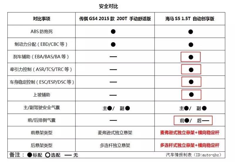海馬S5對于安全配置的打造可謂登峰造極,除了常見的ABS防抱死、制動(dòng)力分配安全配置外,剎車輔助、牽引力控制、車身穩(wěn)定系統(tǒng)、上坡輔助這些高級安全配置同樣具備。反觀GS4,僅提供了最基礎(chǔ)的ABS防抱死、制動(dòng)力分配系統(tǒng),對此,情報(bào)猿只想說,每個(gè)用戶的安全都是必須尊敬的,寧愿少點(diǎn)其他方面的配置,在安全性方面絕不能減配。