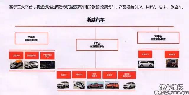 另?yè)?jù)透露,斯威(SWM)汽車將在2020前基于M、S、SL三大平臺(tái),逐步推出8款傳統(tǒng)能源車型和2款新能源車型,產(chǎn)品涵蓋SUV、MPV、皮卡、休旅車等,從而樹(shù)立起獨(dú)特的品牌形象。