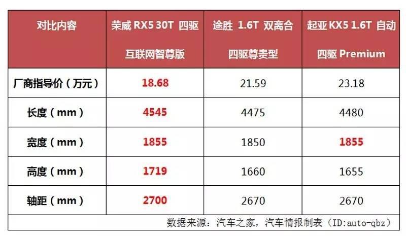 車身尺寸對(duì)比,榮威RX5全面勝出
