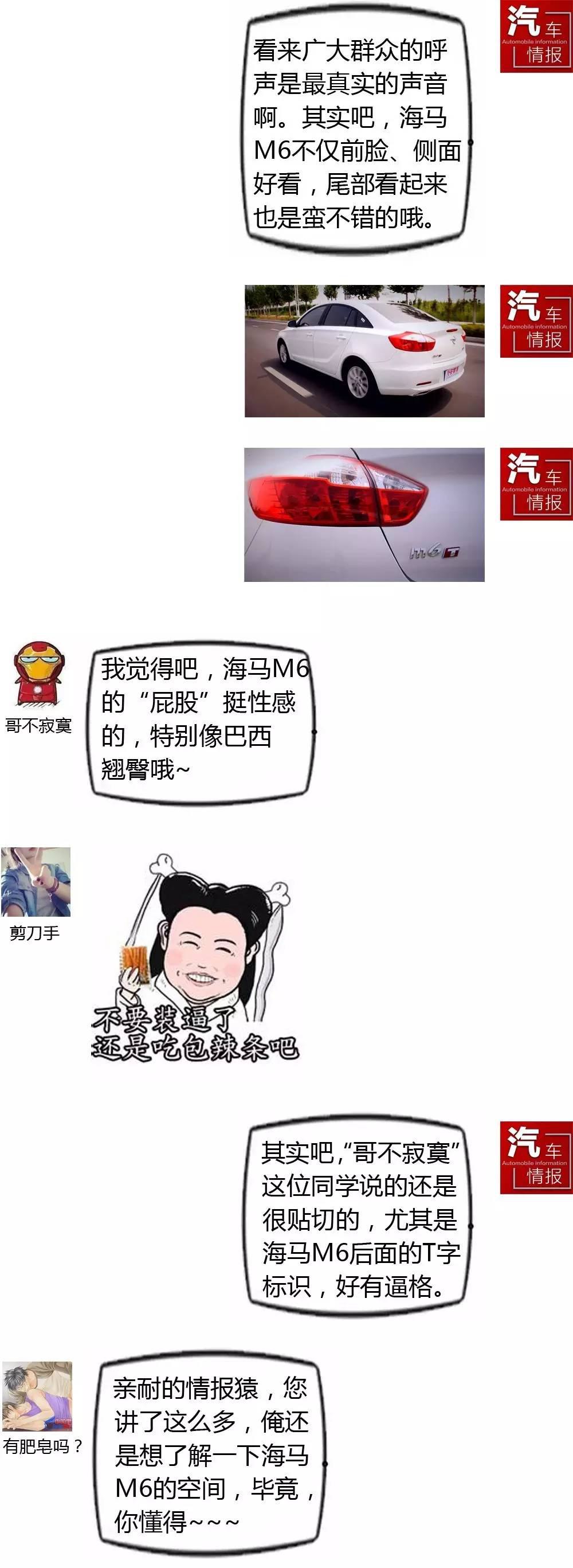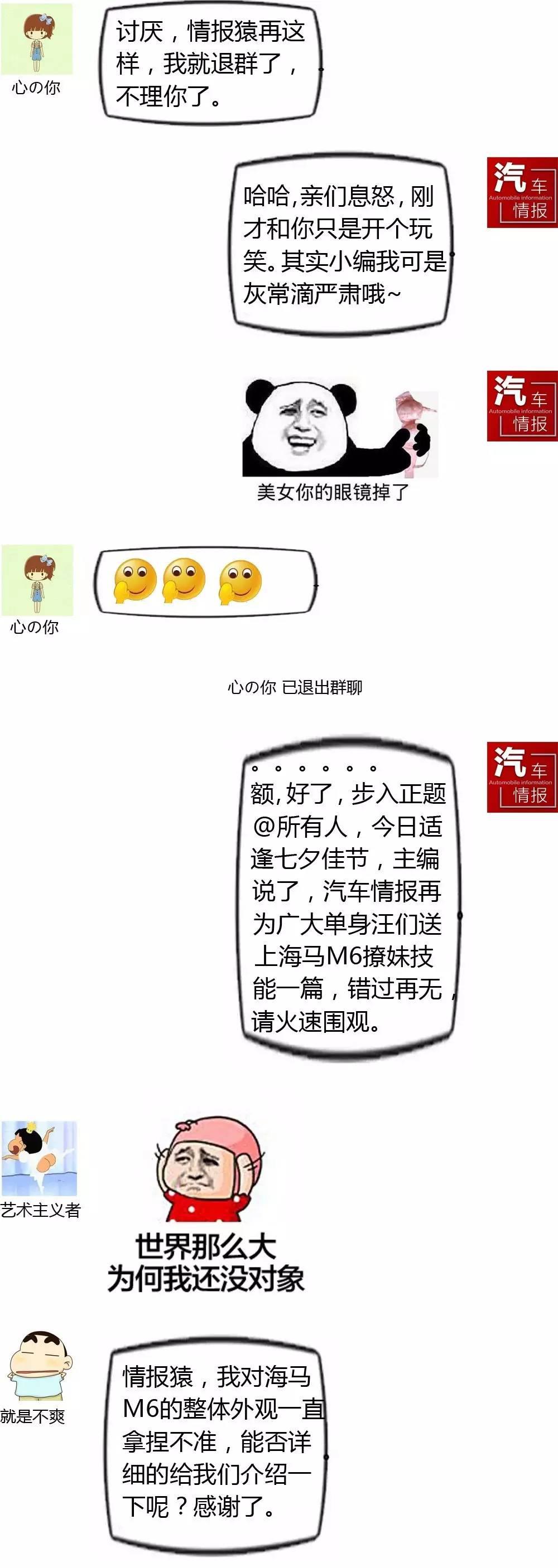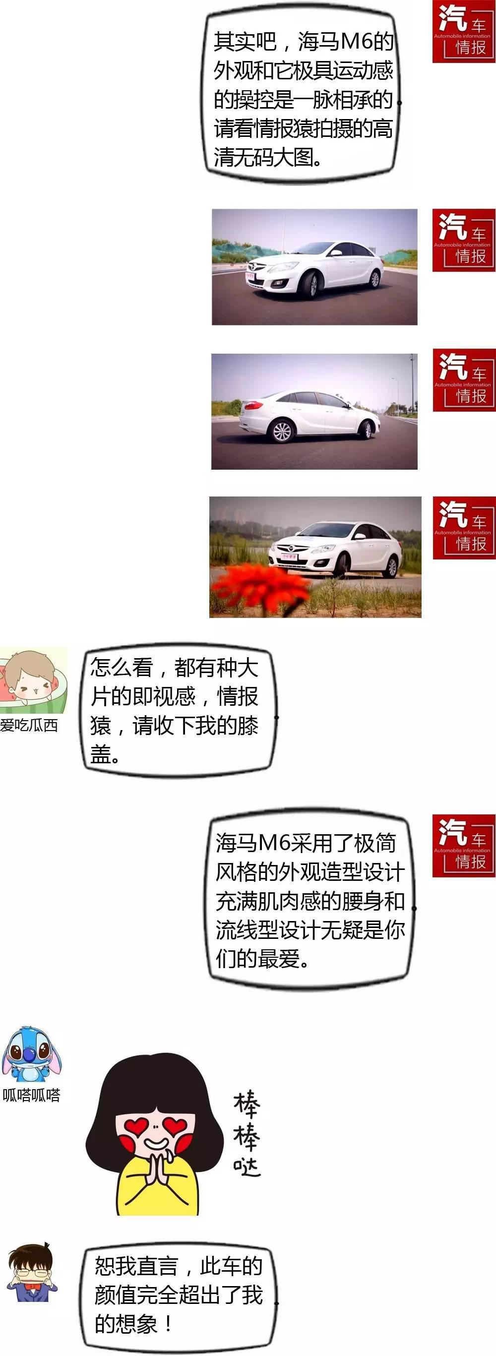 好吧,不知從何時起,汽車情報竟然充當(dāng)了“世紀(jì)佳緣”這一角色,這也難怪,畢竟君子有成人之美嘛。不過,還是有不少小伙伴發(fā)牢騷,表示小編還沒有將海馬M6最后的大絕招言傳身教,為了廣大男同胞后半生的幸福,小編也是豁出去了,再為大家?guī)硪黄诤qRM6的評測,請大家搬起小板凳,聽汽車情報上課啦。