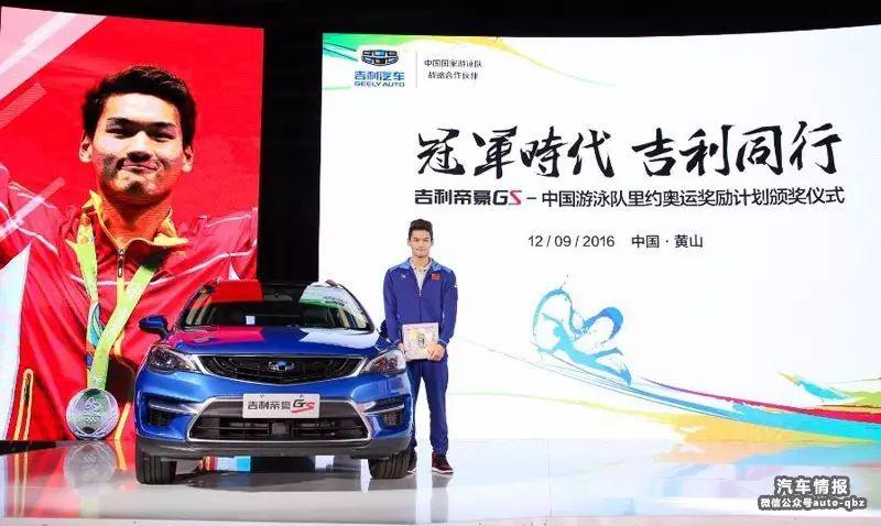 如今,中國(guó)游泳健兒凱旋而歸,吉利汽車也兌現(xiàn)了自己的諾言,于9月12日在黃山將12輛嶄新的“城市跨界SUV”——帝豪GS正式交付給奪得里約奧運(yùn)獎(jiǎng)牌的中國(guó)游泳隊(duì)運(yùn)動(dòng)員和主管教練員。