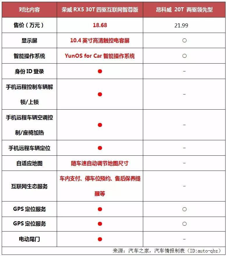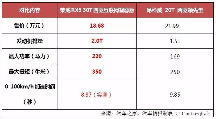 不過,心高氣傲的昂科威可不想這么快就低下高貴的頭顱,又一次向RX5提出了挑戰(zhàn)。可是不比不知道,一比嚇一跳,原來RX5比昂科威優(yōu)秀的不只是一點半點,不信,請看下表。