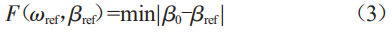 3)通過(guò)Matlab編程獲得在不等式約束條件下的全局最優(yōu)解(oref,8ref),記錄下不同輸出功率點(diǎn)Ps、不同電網(wǎng)頻率點(diǎn)fn下獎(jiǎng)距角參考值9(s,n)的對(duì)應(yīng)關(guān)系。