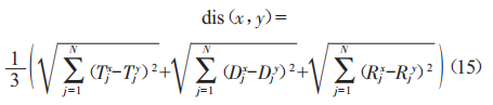 在計算樣本x和N的距離時,綜合考慮多分量特征計算樣本間距離,得到樣本x和N的多分辨率距離計算公式為: