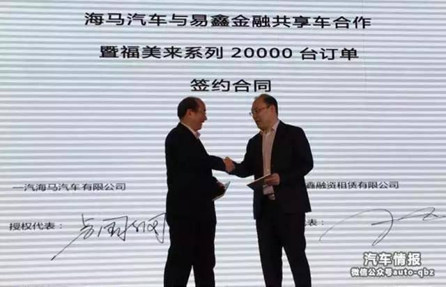 這樣的巨頭咳一咳,行業(yè)市場(chǎng)就得抖三抖。就在去年11月25日,易鑫金融和海馬汽車簽約,一口氣拿下了共享車合作暨福美來(lái)系列20000臺(tái)訂單,這件事可是驚動(dòng)了整個(gè)汽車圈,當(dāng)時(shí)驚得小編我下巴都要掉下來(lái)了。
