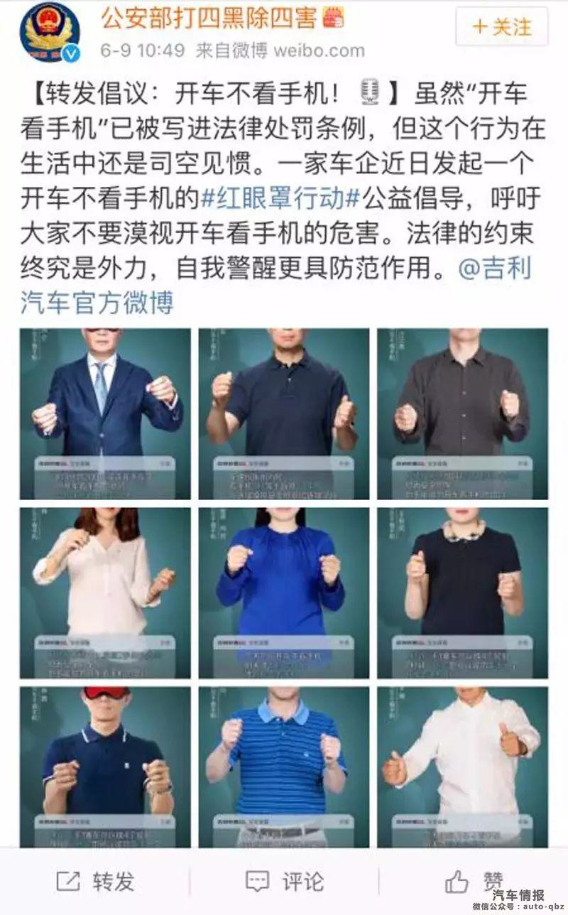 自強(qiáng)者,天助之。正是如此影響巨大且意義十足的安全公益活動(dòng),引起了相關(guān)政府職能部門的關(guān)注。其中,公安部打四黑除四害就在官方微博上轉(zhuǎn)發(fā)倡議,呼吁大家不要漠視開車看手機(jī)的危害,要在法律約束的同時(shí),提高自我警醒和防范。