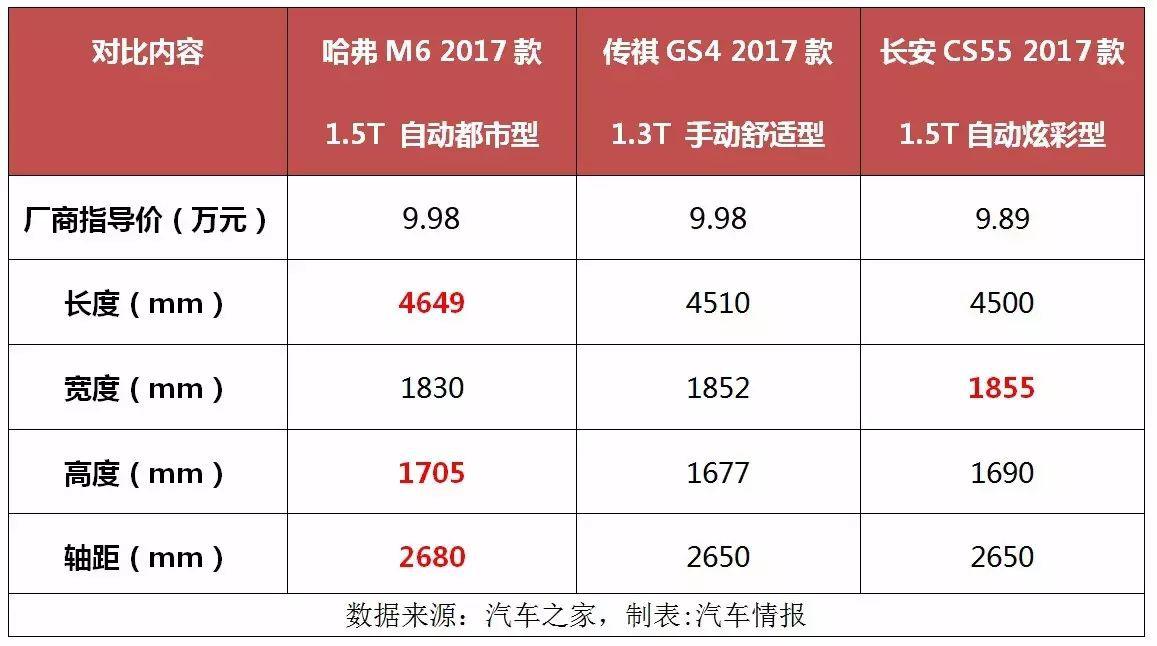 如今,為了驗(yàn)證哈弗M6是否有這樣的真實(shí)力,我們就用傳祺GS4 2017款 1.3T 手動(dòng)舒適型(下文簡稱傳祺GS4)和長安CS55 2017款 1.5T自動(dòng)炫彩型(下文簡稱長安CS55)兩款車,來和哈弗M6 2017款 1.5T 自動(dòng)都市型(以下簡稱哈弗M6)做個(gè)對比,看看價(jià)格同為9.98萬的情況下,哈弗M6處于一個(gè)怎樣的水準(zhǔn)。