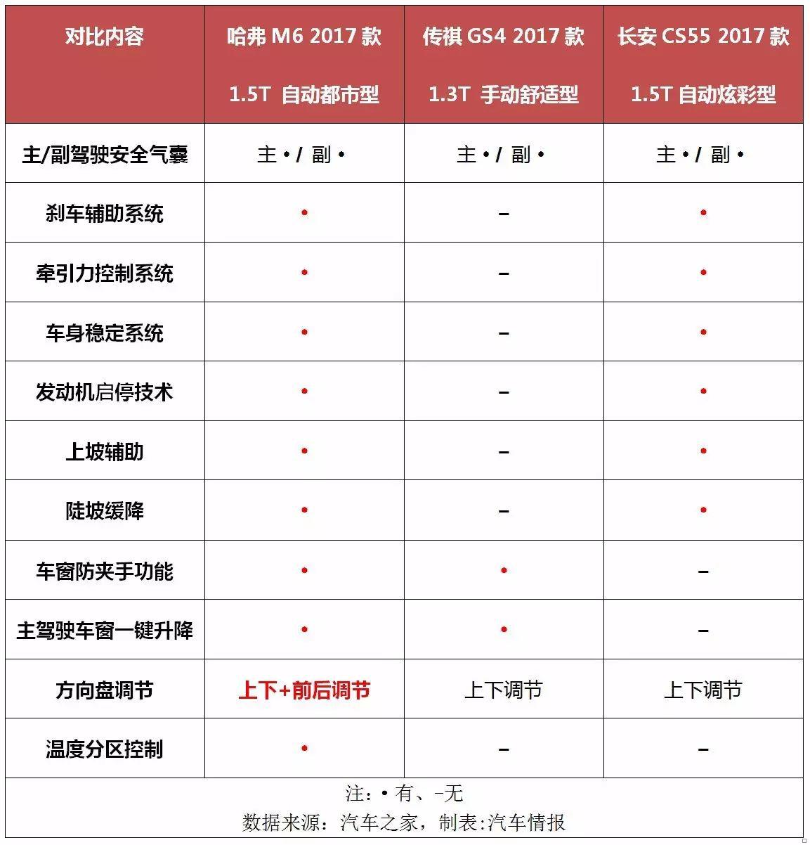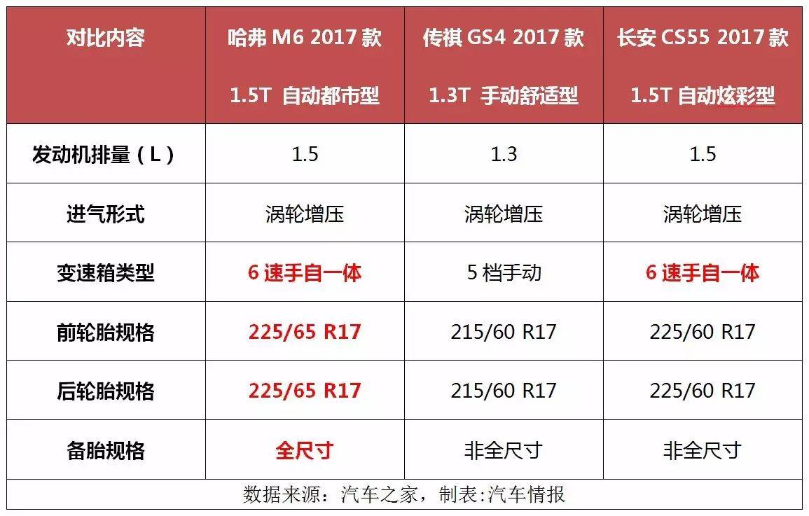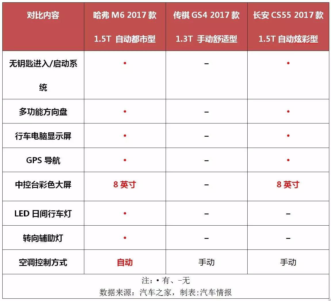 而對于長安CS55來講,其情況相較傳祺GS4要稍微好點(diǎn),至少把傳祺GS4丟掉的配置都補(bǔ)上了。不過,二者和哈弗M6比起來差距還是明顯,這一點(diǎn)不用小編過多的強(qiáng)調(diào),大家自行看上表便知。