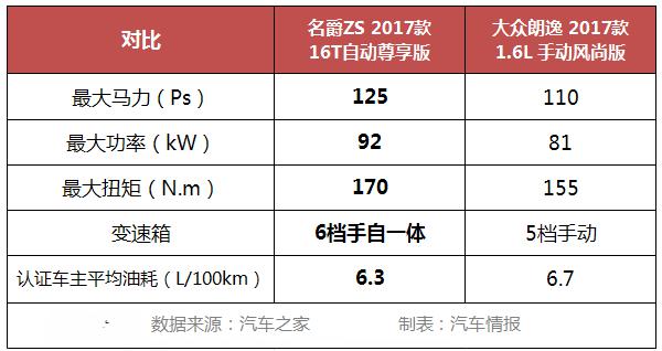 在動(dòng)力方面作比較,估計(jì)大眾朗逸是沒(méi)希望跟名爵ZS比,看下表格數(shù)據(jù)果然不出所料。最大馬力、扭矩、功率,無(wú)一能比肩名爵ZS。動(dòng)力輸了就算了,還在變速箱上栽了個(gè)跟斗。價(jià)格相近,人家是6檔手自一體,你卻只有5檔手動(dòng),我都沒(méi)眼看了……