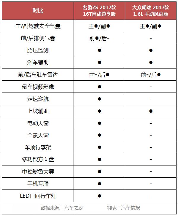 兩車(chē)都具備基本的安全裝置,安全氣囊、胎壓監(jiān)測(cè)、剎車(chē)輔助……但是明顯名爵ZS更勝一籌,售價(jià)更低反而配置更多。倒車(chē)影像、定速巡航、多功能方向盤(pán)、LED日間行車(chē)燈、車(chē)頂行李架……這些實(shí)用的功能朗逸都沒(méi)有配備。