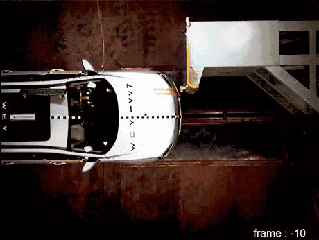 小重疊碰撞測試,車輛以40英里/小時(64公里/小時)的速度撞向固定的剛性壁障,且重疊面積只相當于車身寬度的25%,因此駕駛員前方部位受到的沖擊力加大,對車輛的安全性考驗更嚴苛。