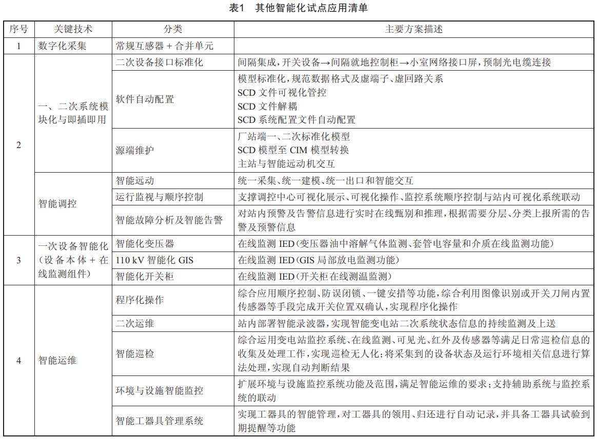 肇慶110KV港口變電站作為南方電網示范工程,除縱向集成及小型化二次設備外,在該項目中還包括如表1所示的智能化試點應用。