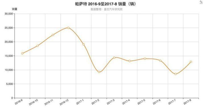 2017年以來,帕薩特的市場表現(xiàn)可以說是每況愈下,月銷量從去年12月的2.5萬臺(tái)降到如今的1萬余臺(tái),近乎腰斬。最慘的則是7月份,銷量僅為0.86萬8582臺(tái),當(dāng)月轎車銷量排行榜上跌至第32名,而接下來的8月份環(huán)比雖有回升,但1.29萬臺(tái)的成績依然同比去年下跌了17%,這樣的表現(xiàn)不禁讓人覺得同為90后的上汽大眾帕薩特已經(jīng)英雄垂暮了。