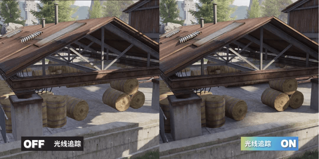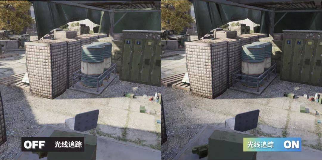 在《暗區(qū)突圍》游戲中的實(shí)際應(yīng)用上,在游戲環(huán)境的陰影效果方面,室外的光線追蹤陰影能夠模擬真實(shí)的太陽光陰影形態(tài),近處的陰影銳利,遠(yuǎn)處的陰影柔和?;诠饩€追蹤的環(huán)境光遮蔽,能夠體現(xiàn)出相交物體間的漫反射光線遮擋效果,進(jìn)而強(qiáng)調(diào)出物體間的擺放關(guān)系,讓畫面更有層次感。相較于傳統(tǒng)的環(huán)境光遮蔽技術(shù),基于光線追蹤的環(huán)境光遮蔽,由于可以獲取到準(zhǔn)確的場景信息,其能夠更加精準(zhǔn)地體現(xiàn)物體間的環(huán)境光遮蔽關(guān)系,避免傳統(tǒng)技術(shù)中的黑暈等現(xiàn)象出現(xiàn)。更好的優(yōu)化了玩家在游戲地圖中的真實(shí)體驗(yàn)感。以高度還原自然光的品質(zhì)為玩家提供更身臨其境的戰(zhàn)局感。
