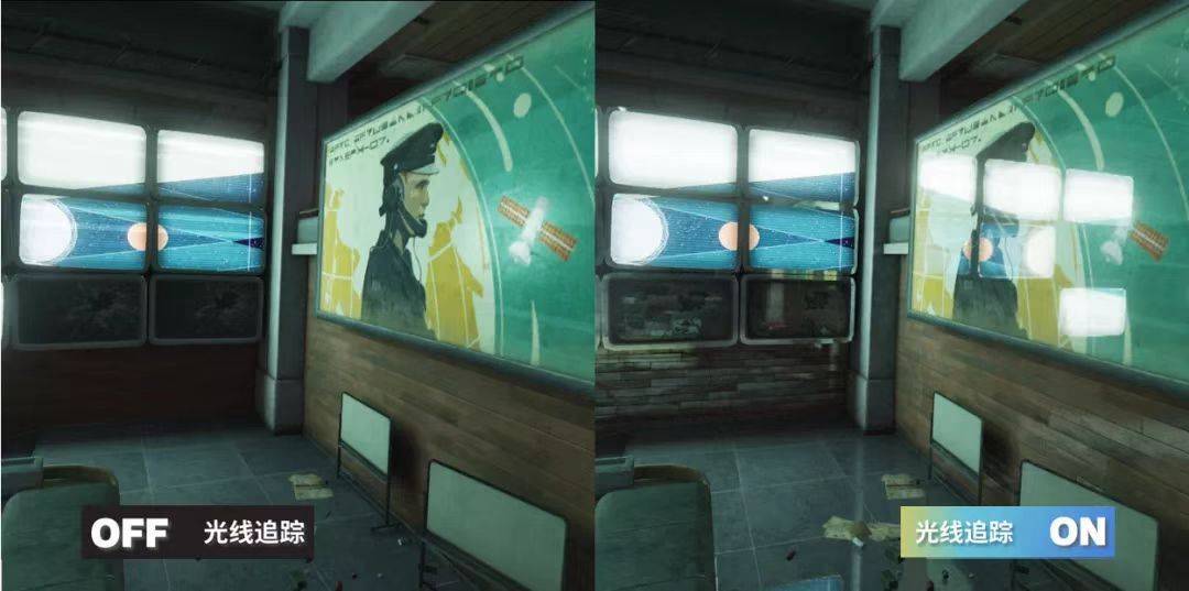在環(huán)境物體的反射方面,光滑表面能夠呈現(xiàn)清晰的、準(zhǔn)確的場景反射,增加場景真實(shí)度和沉浸感。相較于傳統(tǒng)的反射技術(shù),基于光線追蹤的反射能夠渲染到視角外,玩家不能直接看到的物體,例如身后和墻壁側(cè)后面?;诠庾返姆瓷浼夹g(shù),玩家可以在戰(zhàn)局對抗內(nèi)通過環(huán)境獲得更豐富更真實(shí)的戰(zhàn)局信息,這將大大提高游戲的博弈性和對抗感,也為玩家提供了更加豐富的戰(zhàn)術(shù)空間。