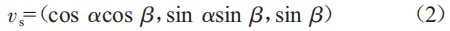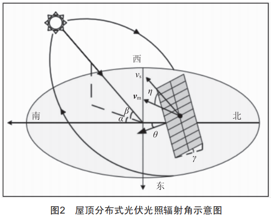 太陽光照射在光伏發(fā)電板的方向角,s由其所在的太陽方位角α和太陽高度角8決定,其數(shù)學表達式為: