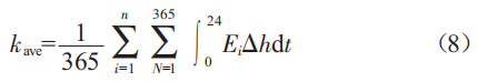 故不考慮光伏發(fā)電板互相遮擋時,假定單塊光伏組件在2022年第N天(N的最大值為365)的1時刻的輻照度為EN.t,則其數(shù)學表達式為: