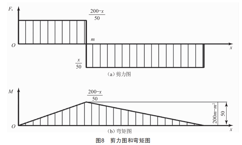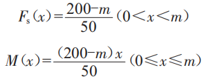 Fs在m=100時左右兩邊相等,當m無限接近于0和200時,剪力達到最大值,該最大值為4N,遠遠小于材料的斷裂疲勞強度:從彎矩方程來看,彎矩的大小不僅與m有關(guān),還與截面距離點A的長度x有關(guān),結(jié)合彎矩圖可以看出,無論x取何值,彎矩最大處總是與參數(shù)m的值即F的受力點有關(guān)。當m=100時,彎矩最大為200kN·m,小于壓縮板材料的抗彎強度,因此壓縮板可正常使用。