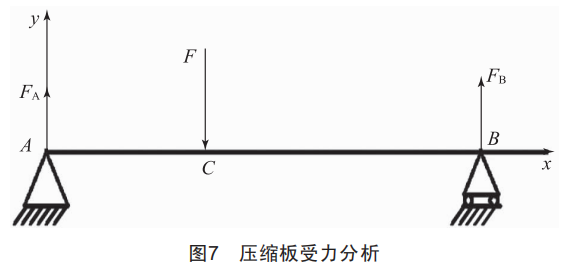 以壓縮板左端A點為原點坐標,直線AB為x軸,過A點垂直于AB建立y軸,建立平面直角坐標系,如圖7所示。