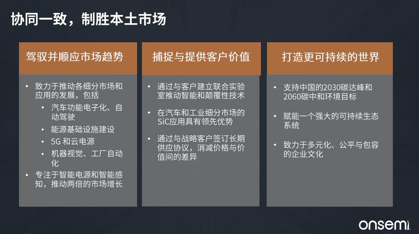 當前后疫情時代,世界上各種不確定因素仍然較多。談到安森美的制勝之道,簡單來講是捕捉市場上表現(xiàn)出來的確定性趨勢,同時針對市場需求進行投入,來支持其市場滲透率的進一步提升。