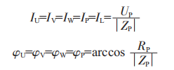 如果ZU=Z==Zw=ZP,則該負(fù)載稱為對稱三相負(fù)載,此時: