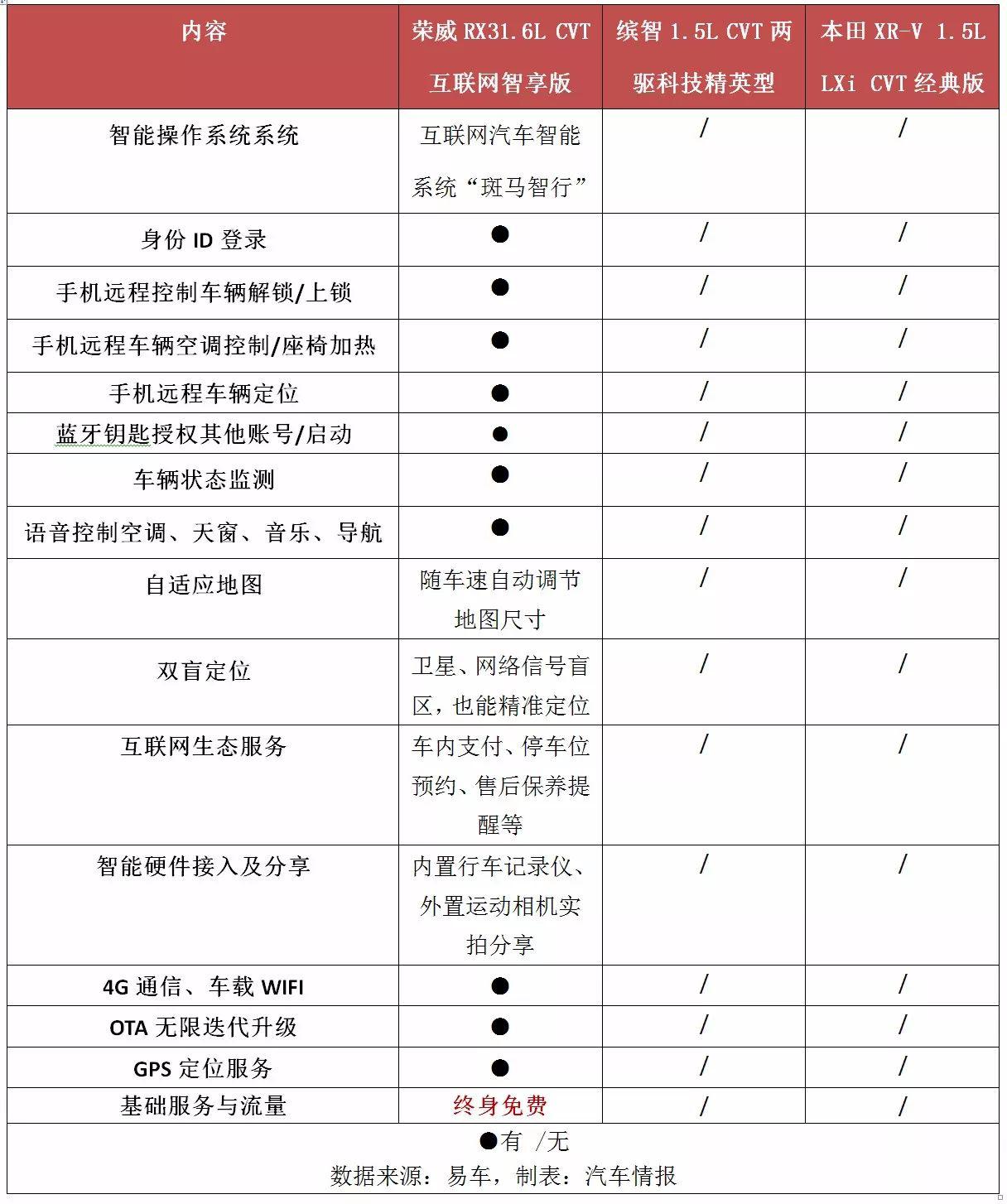 通過(guò)下表可以明顯看出,榮威RX3的豐富程度比繽智和XR-V高的不是一個(gè)量級(jí),基本上可以用碾壓來(lái)形容。別的先不說(shuō),就拿時(shí)下冬季必備的前排加熱、自動(dòng)空調(diào)來(lái)講,榮威RX3沒(méi)有缺席。而在一些舒適科技配置上,榮威RX3將8英寸大屏、皮質(zhì)座椅、一鍵啟動(dòng)、全景天窗、車內(nèi)氛圍燈、前后中央扶手等一個(gè)不落的裝配上,明顯誠(chéng)意十足。