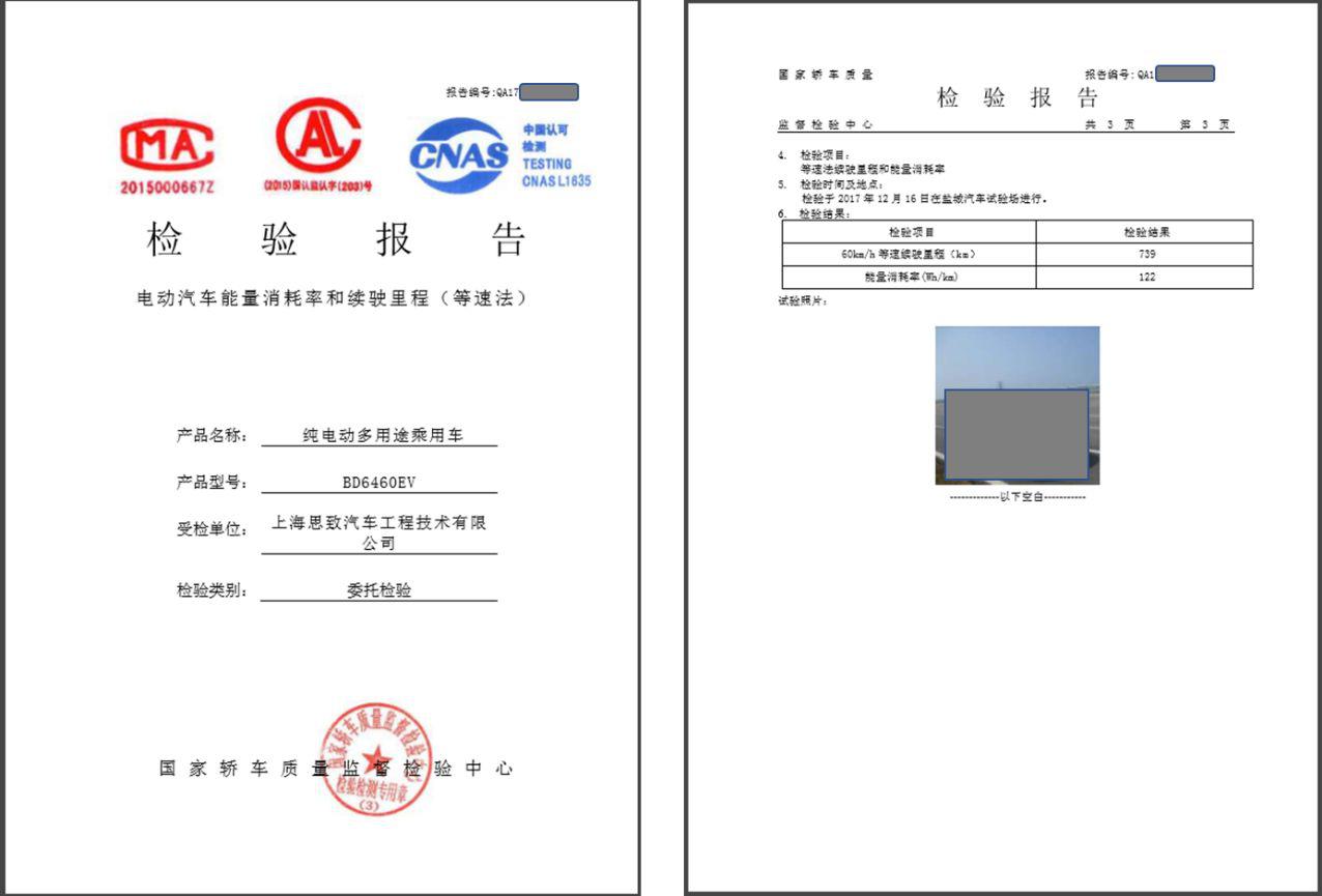 最近情報君從相關(guān)行業(yè)部門得到的一份報告,讓人格外驚喜。在這份由國家轎車質(zhì)量監(jiān)督檢驗中心出具的《電動汽車能量消耗率和續(xù)駛里程檢驗報告》中,我們發(fā)現(xiàn),一家名為“上海思致汽車工程技術(shù)有限公司”的企業(yè)送檢的中型SUV產(chǎn)品,綜合工況(NEDC)續(xù)航里程達(dá)到了536公里,60公里勻速續(xù)航里程則達(dá)到了739公里。這可是國家級檢驗機構(gòu)的官方數(shù)據(jù),不是能夠造假造出來的。