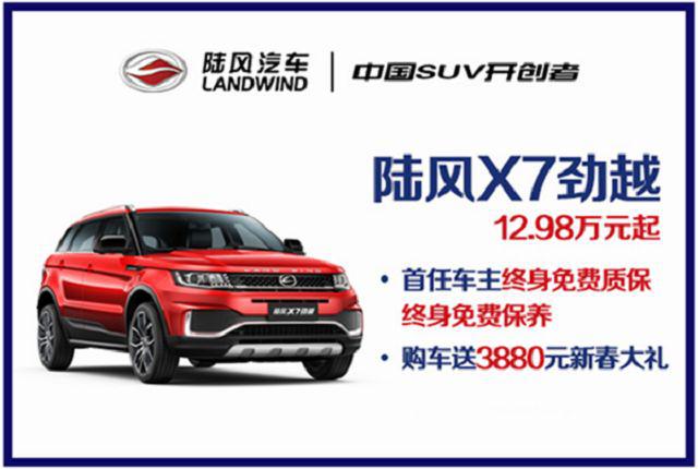 陸風(fēng)汽車(chē)的“新春鉅惠”包括超動(dòng)感激擎SUV-陸風(fēng)X7勁越、新青年SUV-陸風(fēng)X2和都市SUV-陸風(fēng)X5 PLUS。