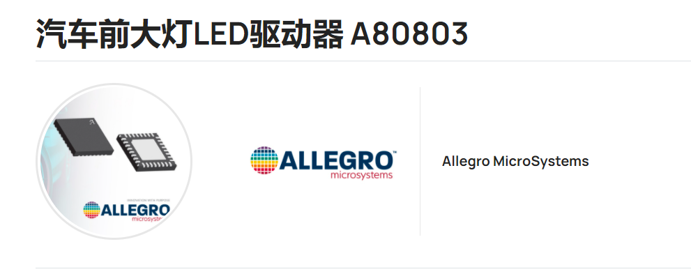 Allegro MicroSystems 汽車前大燈LED驅(qū)動器“A80803”榮獲2022年第二十屆TOP10 POWER最佳應(yīng)用獎