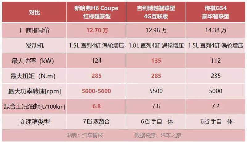 作為一輛緊湊型SUV,想要開到野外自駕游的話,就得面對各種惡劣的路況,萬萬不能忽視動(dòng)力性能。那這三款車新哈弗H6 Coupe 、吉利博越和傳祺GS4的動(dòng)力如何呢?我們來看下面的表格。