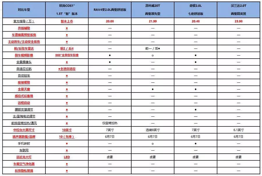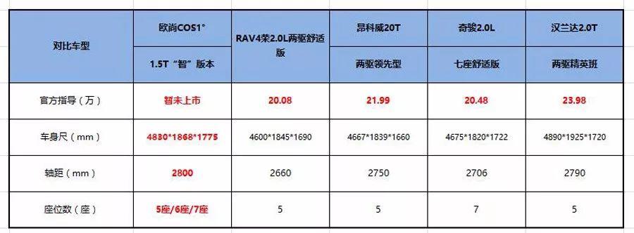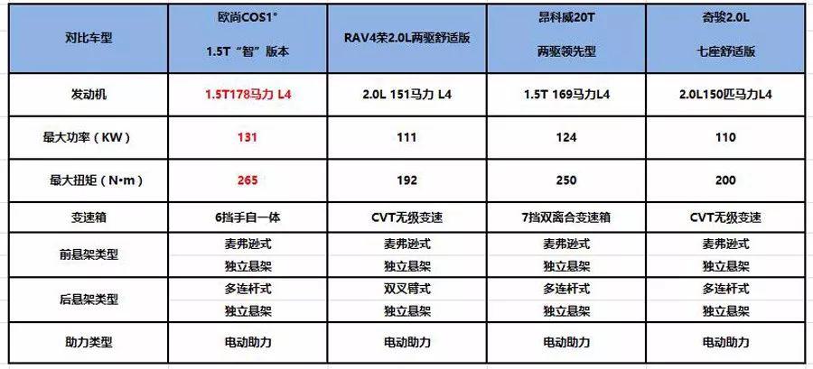 既然是產(chǎn)品向上具備較高質(zhì)價比,沖擊合資SUV的車型,不比較比較就說不過去了。目前市面上20萬左右的主流合資SUV以奇駿、昂科威、RAV4榮放等為主,但是由于這些車型價格虛高,20萬左右的價格只能入手一款入門版車型,無法讓消費(fèi)者真正的滿意。如此一來就給了歐尚COS1°很大的市場空間。那么,歐尚COS1°有能力與之抗衡嗎?