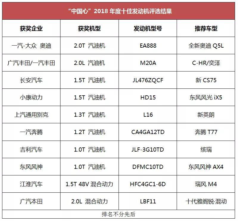 說起優(yōu)秀發(fā)動(dòng)機(jī),想必各位首先想到的就是沃德十佳發(fā)動(dòng)機(jī)!沒錯(cuò),這份榜單一直都是發(fā)動(dòng)機(jī)技術(shù)的風(fēng)向標(biāo),且權(quán)威性強(qiáng),不少消費(fèi)者就是看了這份榜單后才下單買車的。但實(shí)事求是的講,沃德十佳發(fā)動(dòng)機(jī)的測試車型都是在美國本土銷售,和我們的現(xiàn)實(shí)購車需求有不小的差異。也正因此,“中國心”年度十佳發(fā)動(dòng)機(jī)獎(jiǎng)項(xiàng)無疑更具參考價(jià)值。而且,專業(yè)性和權(quán)威性相比“沃德”都不遜色。近日,“中國心”2018年度十佳發(fā)動(dòng)機(jī)正式揭曉,令人振奮的是,上榜的中國品牌發(fā)動(dòng)機(jī)超過半數(shù),占到了六席。不得不說,這些年,中國品牌確實(shí)有了質(zhì)的變化,在與外資品牌的競爭中優(yōu)勢也愈發(fā)明顯了。