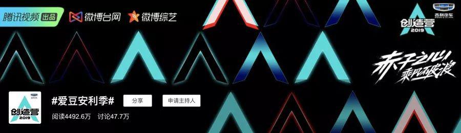 提起《創(chuàng)造營(yíng)2019》這檔綜藝節(jié)目,相信不少小伙伴都印象深刻。沒(méi)錯(cuò),作為《創(chuàng)造101》的兄弟版偶像選秀節(jié)目,無(wú)論是男團(tuán)發(fā)起人迪麗熱巴,還是胡彥斌、黃立行、蘇有朋和郭富城四位人氣導(dǎo)師,都讓人印象深刻,每每看完都三月不知肉味。的確,數(shù)據(jù)不會(huì)說(shuō)謊。以貓眼專業(yè)版數(shù)據(jù)為例,該節(jié)目上線至今,累計(jì)播放量已達(dá)2.5億,歷史最高熱度曾一度達(dá)到9858。而截至4月20日,《創(chuàng)造營(yíng)2019》實(shí)時(shí)熱度在眾視頻平臺(tái)綜藝板塊中皆排名第一,其火爆程度可見(jiàn)一斑。不過(guò),除了里面眼花繚亂的帥哥之外,作為該節(jié)目指定用車的吉利汽車也是公眾關(guān)注的焦點(diǎn)。從大數(shù)據(jù)來(lái)看,吉利與《創(chuàng)造營(yíng)2019》節(jié)目捆綁的#愛(ài)豆安利季#話題,閱讀量超4000萬(wàn),討論量達(dá)46萬(wàn),一度躋身熱門(mén)話題榜。同時(shí),由于準(zhǔn)備了亞洲巨型天幕、環(huán)球天幕燈光秀等硬核曝光資源,吉利汽車在粉絲群體中也形成比較高的知名度,打榜總量在全部贊助商中排名第一,可謂是玩得一手好的粉絲營(yíng)銷。