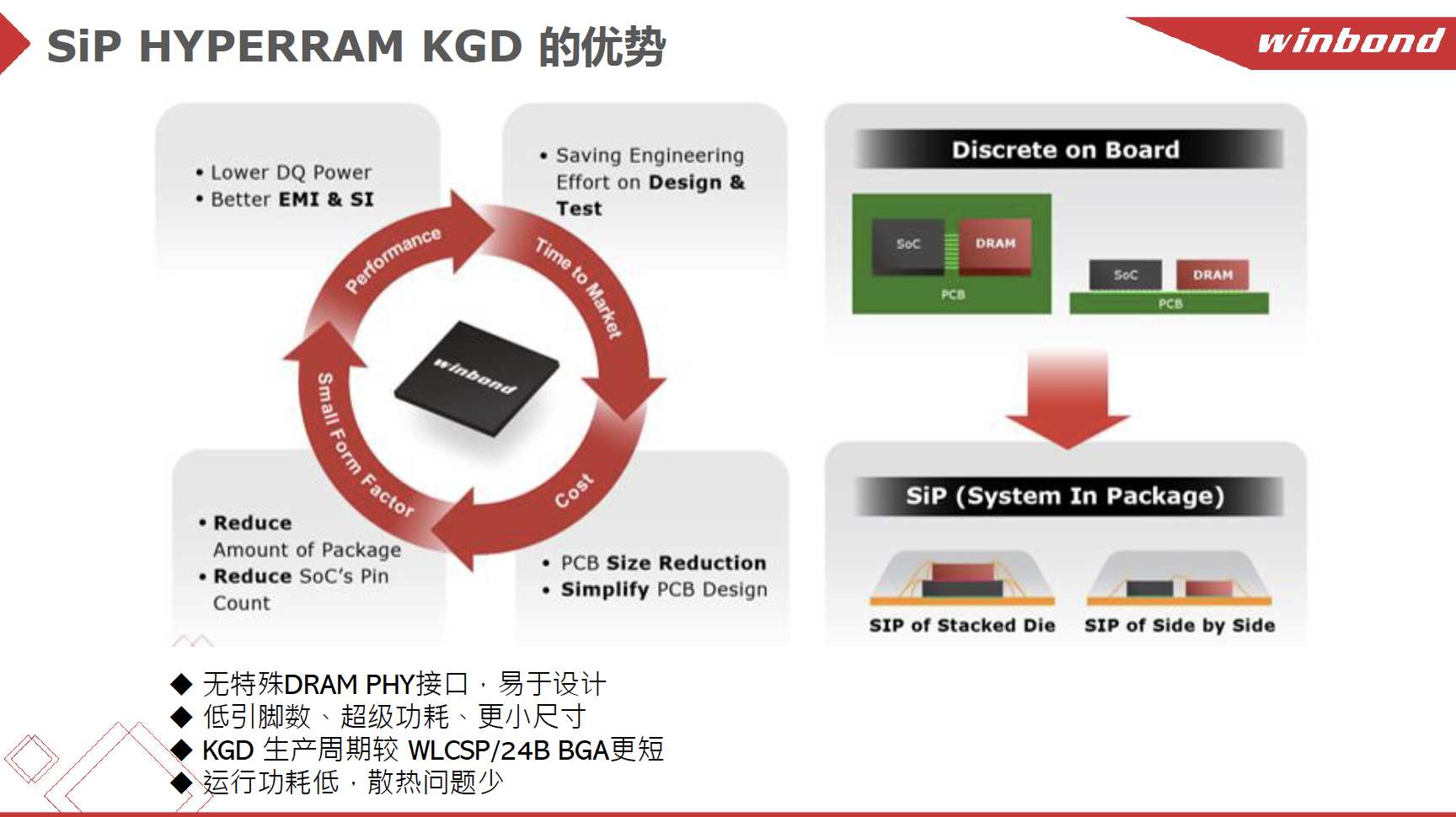 此外,華邦目前也在和主芯片廠商合作進(jìn)行SiP(多芯片合封技術(shù))的開發(fā),提供KGD產(chǎn)品跟客戶的主芯片一起封裝。SiP產(chǎn)品可以在華邦進(jìn)行測試,免去單獨(dú)的封測環(huán)節(jié)。多芯片合封技術(shù)同樣是減少封裝面積、減少能源消耗、降低客戶成本、提升產(chǎn)品性價比方式。