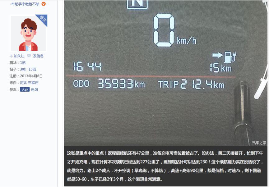從NEDC續(xù)航數(shù)據(jù)上看,2017款最低續(xù)航156km、2018款續(xù)航206km ,日常上下班代步,基本上也可以做到一周一充。但讓消費者真正放心的是,不浮夸且也不縮水的續(xù)航里程,這讓消費者吃了一顆定心丸,這一點可以從某汽車論壇得到印證。