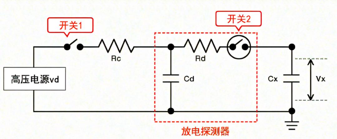 以IEC61000-4-2標準人體靜電模型(HBM)為例,下圖是靜電發(fā)生器等效模型。Vx是合成電壓,Cx為待測件DUT(Device under test),Rc為充電電阻,Cd為充電電容,Rd為放電電阻。簡單的工作原理就是:充電開關1閉合,放電開關2斷開,高壓電源Vd通過Rc對Cd充電;充電開關1斷開,放電開關2閉合,Cd儲存電荷對DUT放電。 到此可以發(fā)現(xiàn)電容對抗靜電的原理就是能量的轉(zhuǎn)移,將Cd儲存的能量瞬間轉(zhuǎn)移到放電時的Cd和Cx上面。