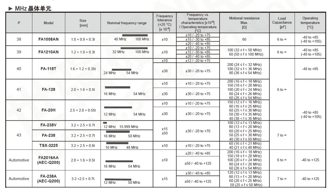 忽略車規(guī)級(jí)和商用,從頻率和封裝來看,F(xiàn)A-128/FA-20H/FA-238V等都可以選擇。