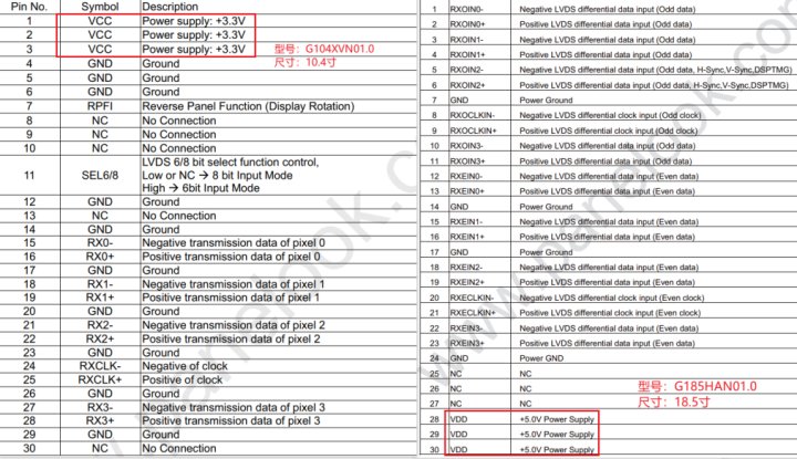 2. 嚴(yán)格區(qū)分屏工作電壓與背光電壓,不建議將主板信號(hào)接口處引出的電源引腳用作屏幕的背光電壓源或可能的其他用途,稍不注意連接錯(cuò)誤,也有燒壞主板的風(fēng)險(xiǎn);